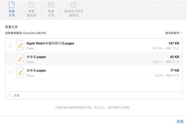 文件恢复功能会保存你最近 30 天内删除的所有 iCloud 文件,30 天过后,这些文件就会被永久删除。