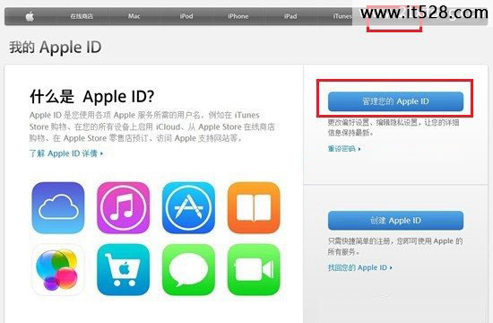 第一步:首先进入苹果中国官网,然后在上部导航条中,点击进入“技术支持”,之后在点击进入“管理您的Apple ID”,如下图所示: