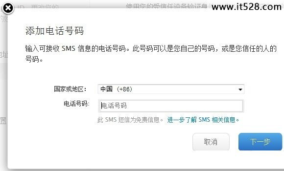 第七步:接下来终于是正式的设置了,首先需要选择国家和地区,然后填写上您的手机号码,完成后点击“下一步”,如下图所示: