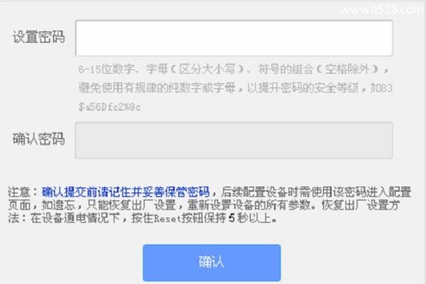 有些路由器第一次打开设置界面时,会提示用户先设置一个管理员密码(也就是登录密码),如下图所示。按照提示,自己设置一个就好。