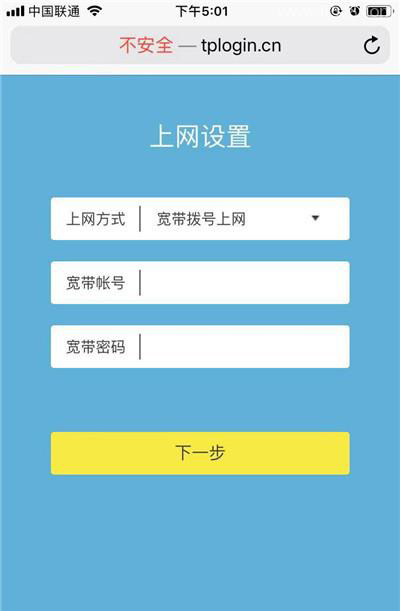 如果浏览器中未自动打开设置页面,请在浏览器中输入:tplogin.cn,手动打开设置页面。