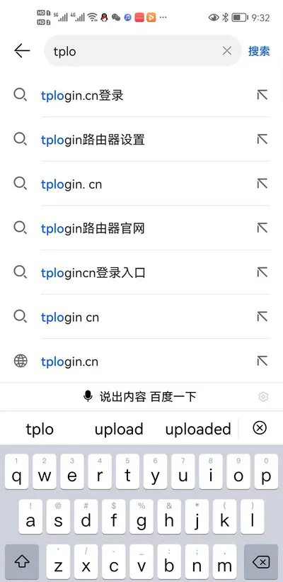 (4)下拉框选择问题。当你的tplink路由器可以正常上网时,在浏览器中输入tplogin.cn的时候,输入一部分后浏览器的下拉框会出现很多选项,如下图所示。
