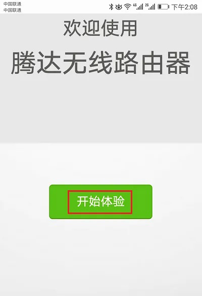 腾达路由器是第一次设置时,在浏览器输入tendawifi.com 后,会出现如下图所示的页面,此时请点击页面中的:开始体验 按钮,然后根据页面中的提示,设置路由器上网。